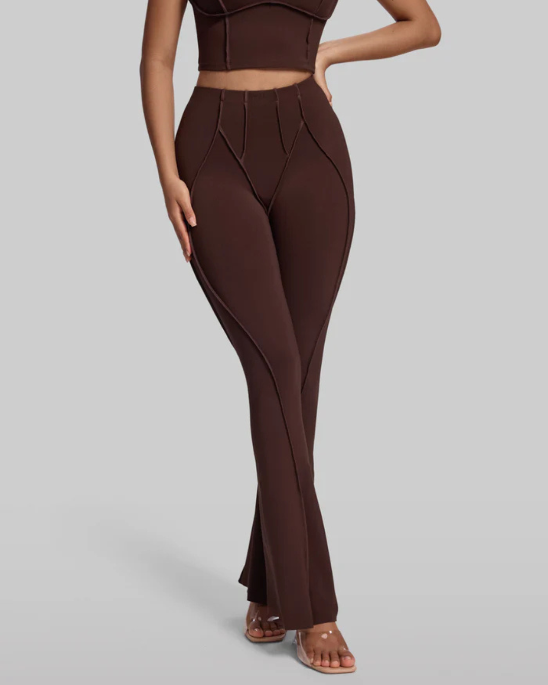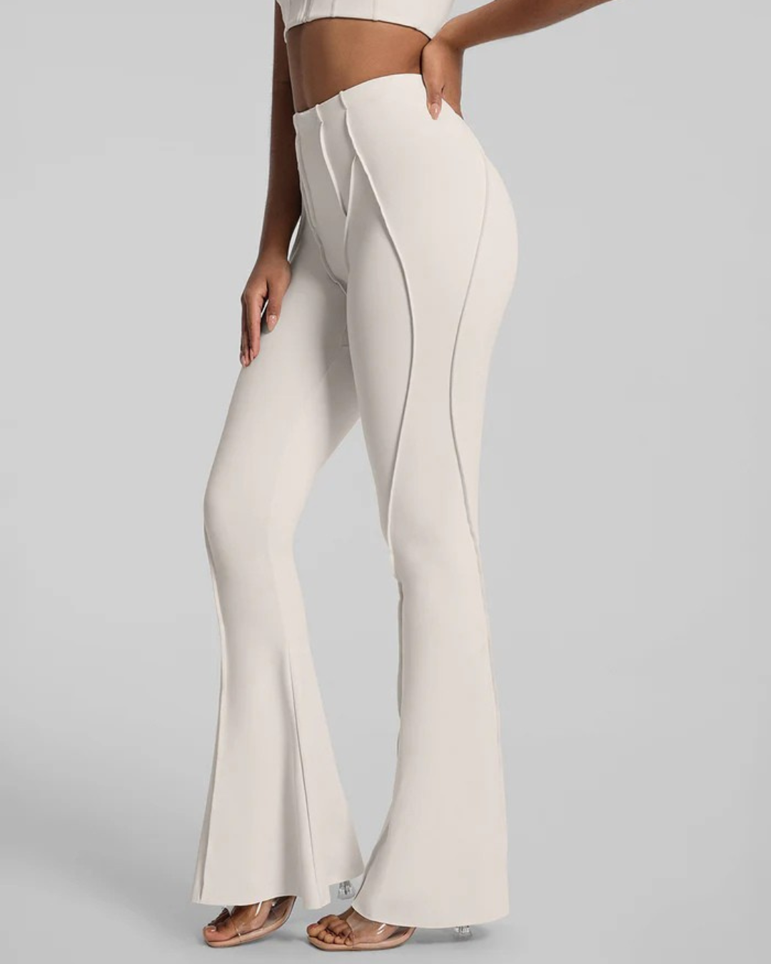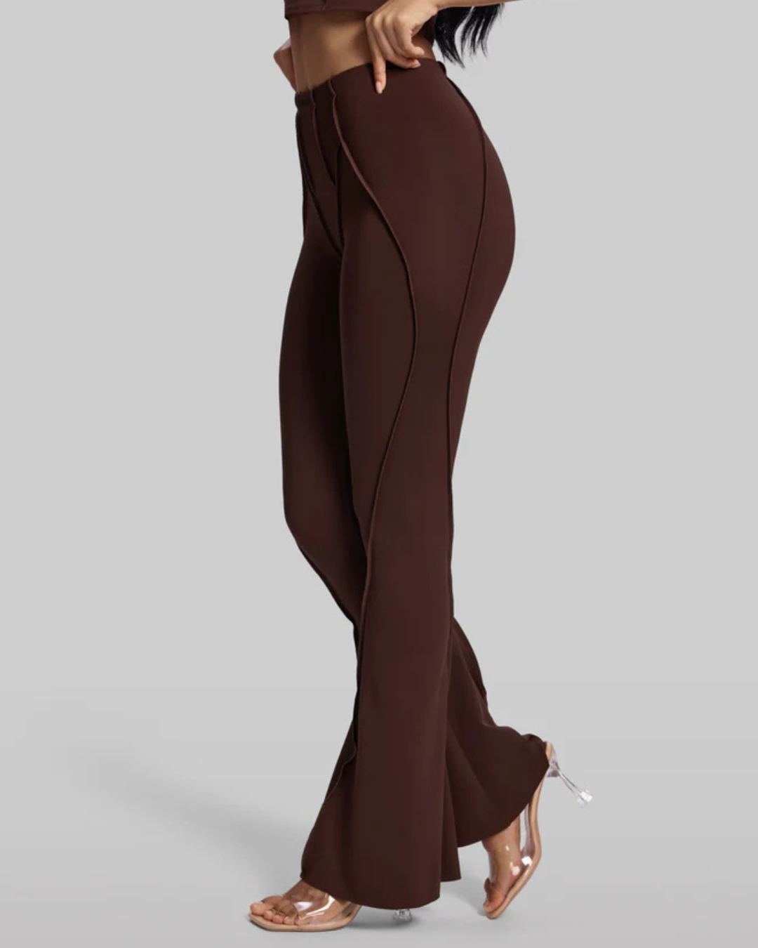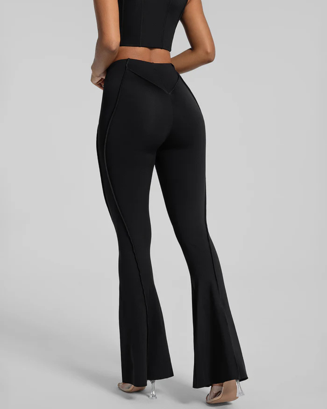 Bacak Boyunu Uzatan Flare Kesim: Dizden aşağıya doğru genişleyen paça yapısı, dikey kontür dikişleriyle birleşerek bacaklarınızı daha uzun ve ince gösterir.