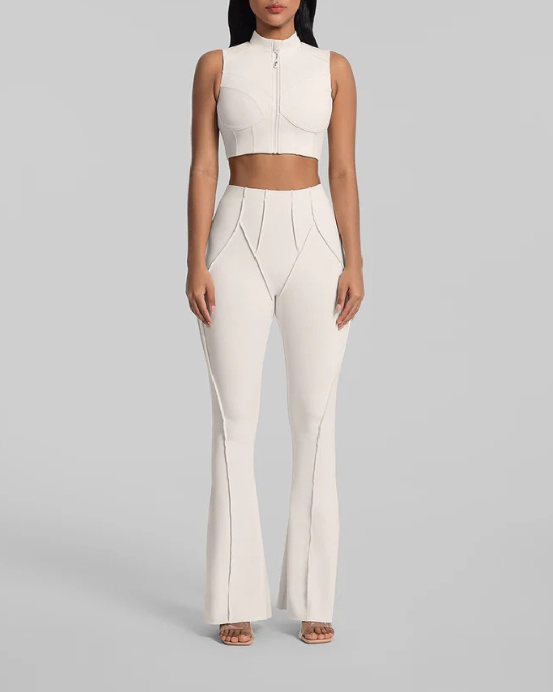 Zarafeti ve hareketi bir araya getiren LuxeIcon Nova Flare Tayt, stilinizi bir üst seviyeye taşımak için tasarlandı. Minimalist dikey dikişlerin bacak boyunu uzatan etkisi, modern İspanyol paça (flare) detayıyla birleşerek hem spor salonunda hem de günlük kombinlerinizde kusursuz bir silüet oluşturur. Sadece giyin ve hazır olun; bu ikonik kesim kendi adına konuşur.